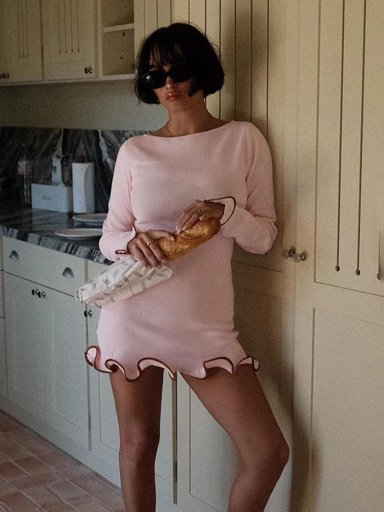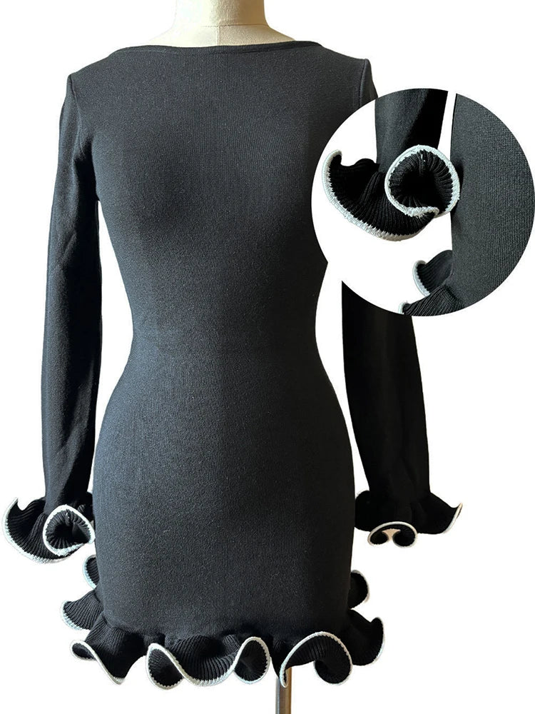 Pay in 4 instalments with AfterPay, Buy Now Pay LaterAutumn Knitted Mini Contrast Color Slim Sweater Dress Elegant Party Long Sleeve Dress