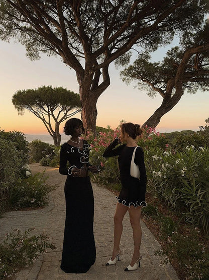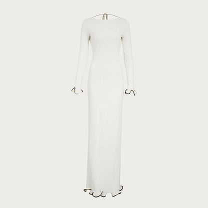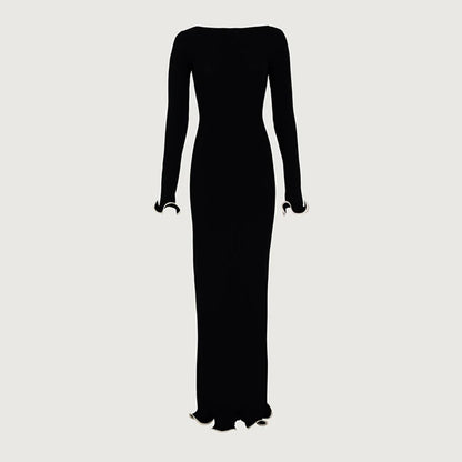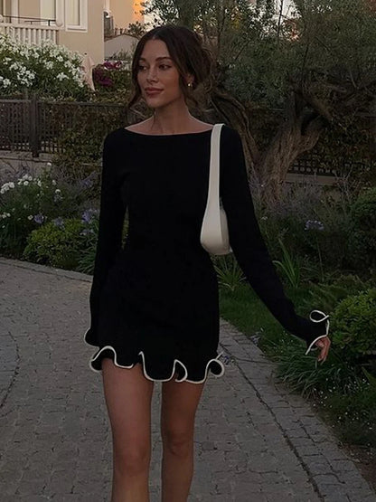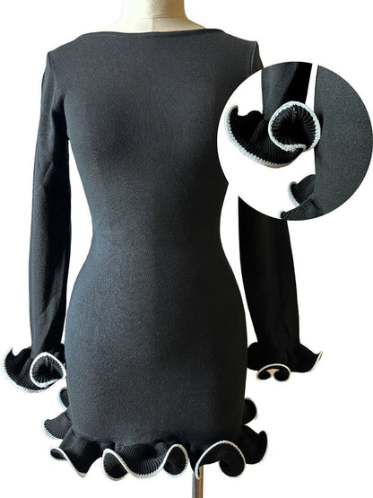 Autumn Knitted Mini Contrast Color Slim Sweater Dress Elegant Party Long Sleeve Dress