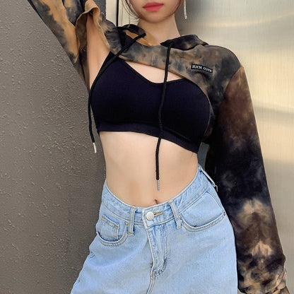 Autumn Short Sweatshirts Hoodies Tie-dye Crop Top Jumper Pullover Clubwear Casual Streetwear