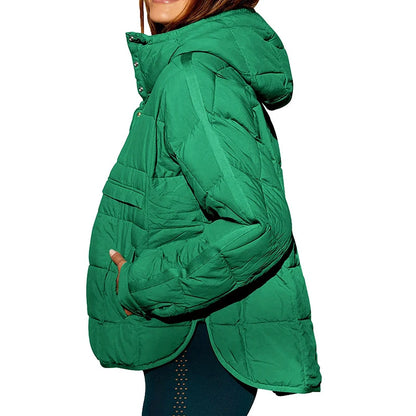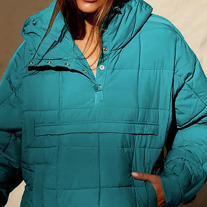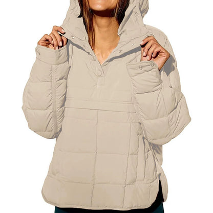 Autumn Winter Padded Jacket For Women Fashion Pockets Long Sleeves Hooded Pullovers Casual Coat