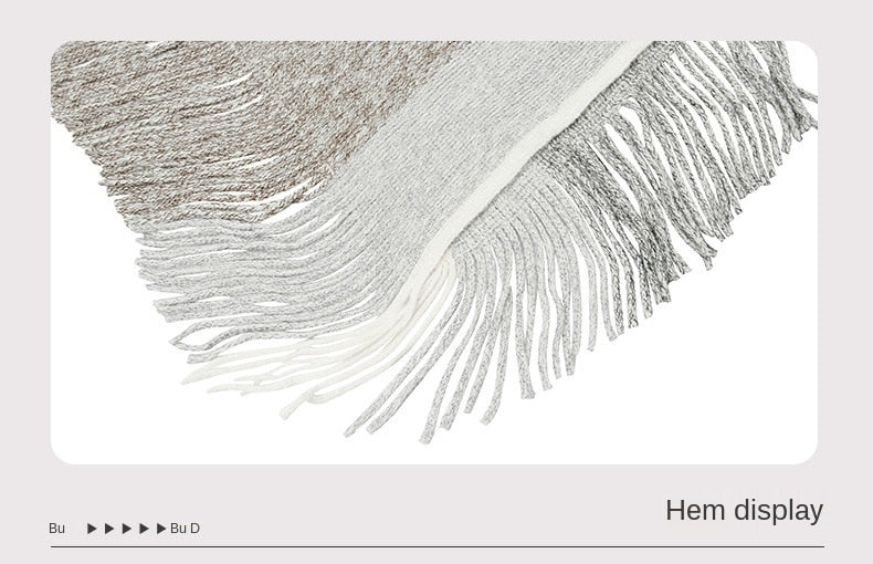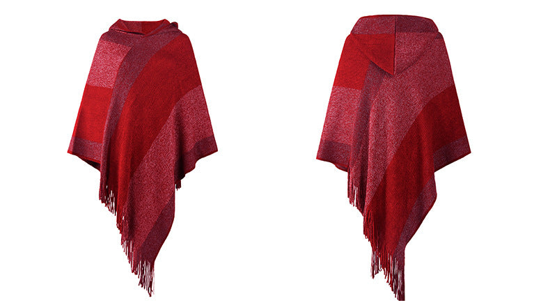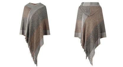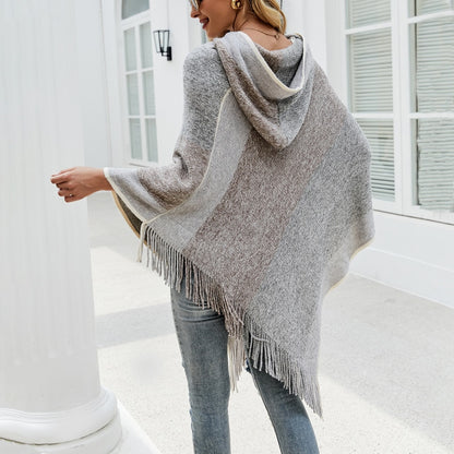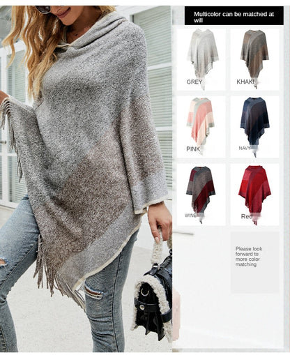 Autumn Winter Women Sweaters Poncho Knitting Capes Cloak Sweater V-Neck Irregular Hem Tassels Coat Color-block Knitted Pullover