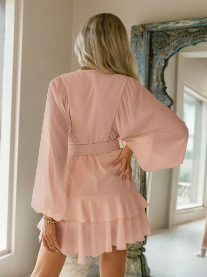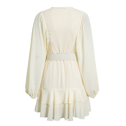 Belt blue plaid batwing long sleeve women dress summer Office ruffle shirt mini dress Casual button A-line Dress