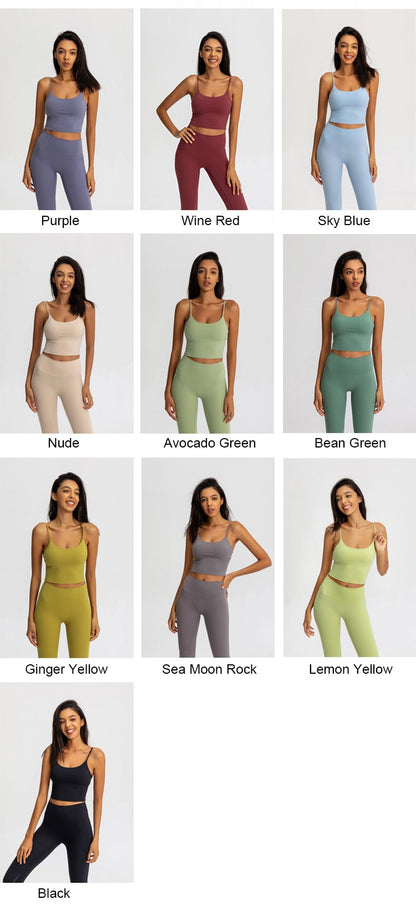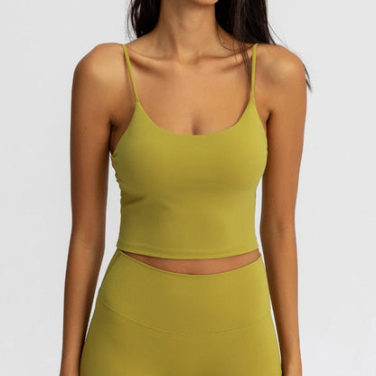 Buttery Soft Yoga Athletic Tank Top Spaghetti Straps Gym Fitness Crop Top Anti-sweat Push Up Workout Sports Bras
