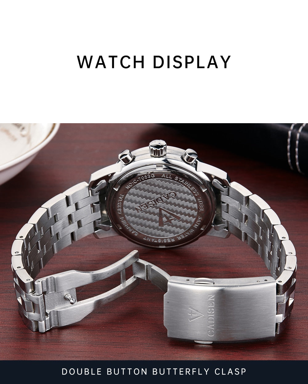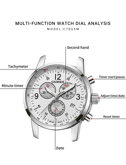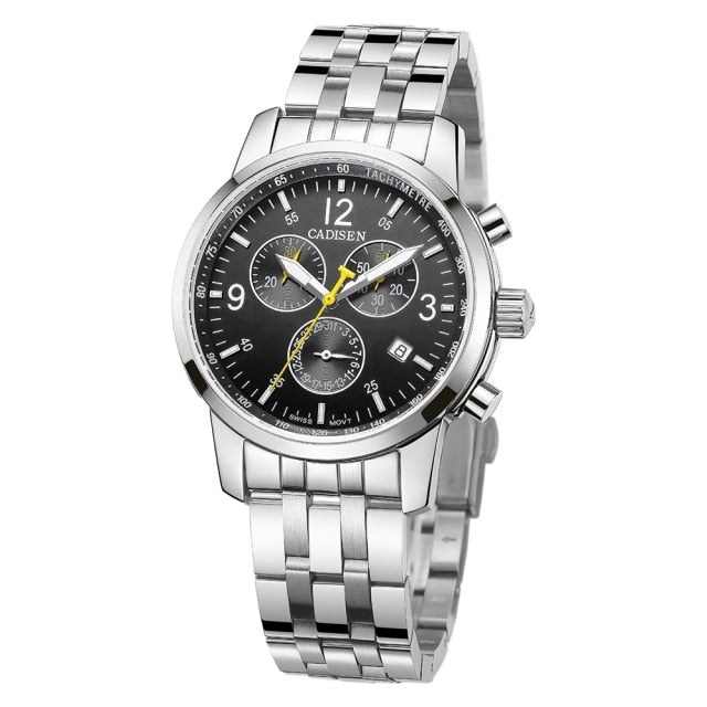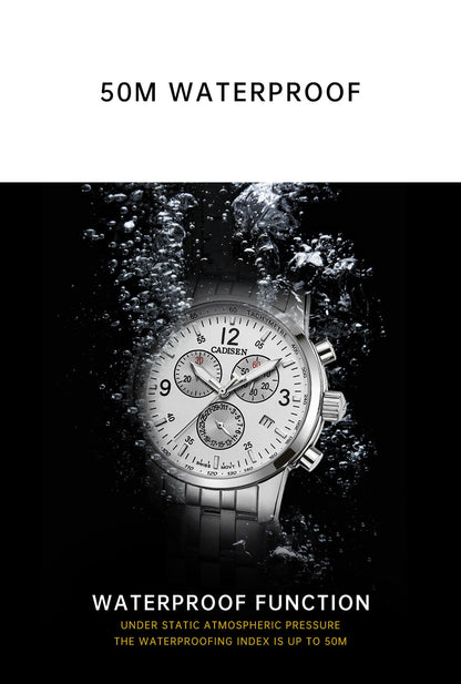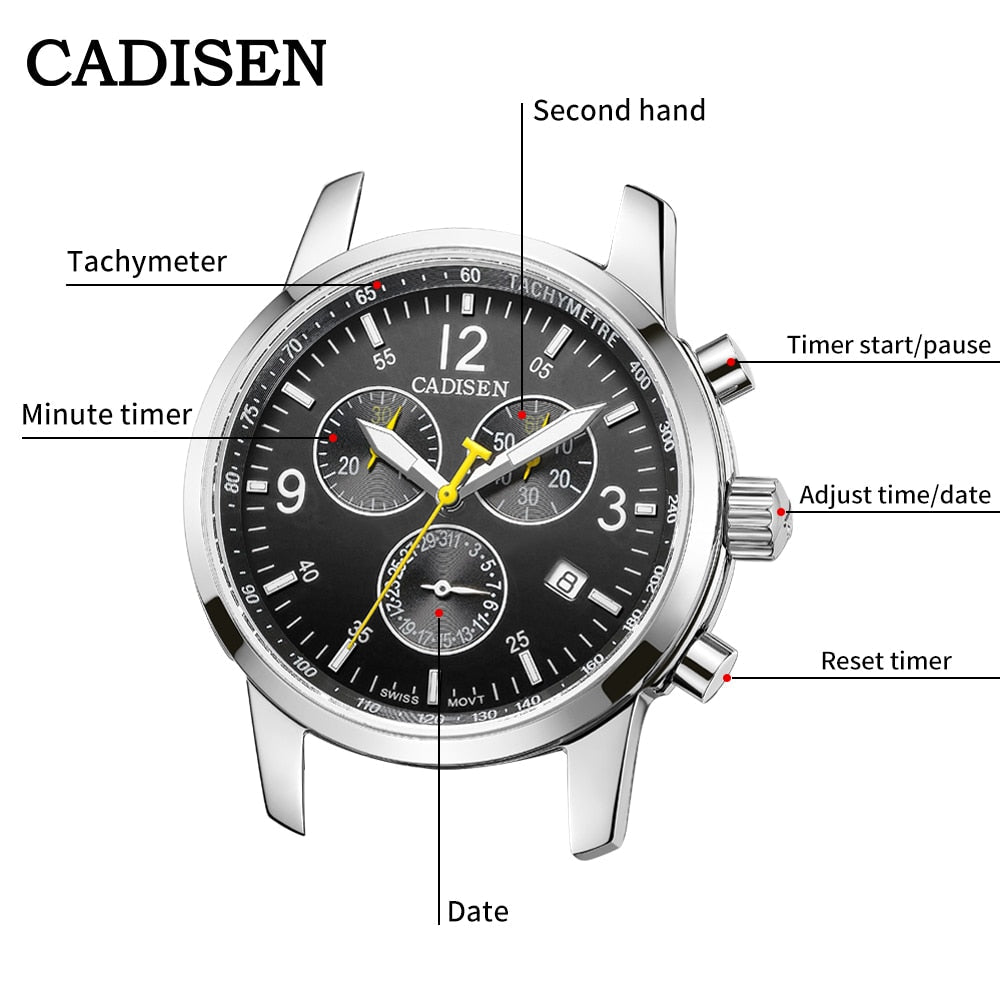 CADISEN New Mens Sports Quartz Watches Swiss ISA Cal.8171 movement Top Brand Sapphire Waterproof Chronograph Luxury Watch