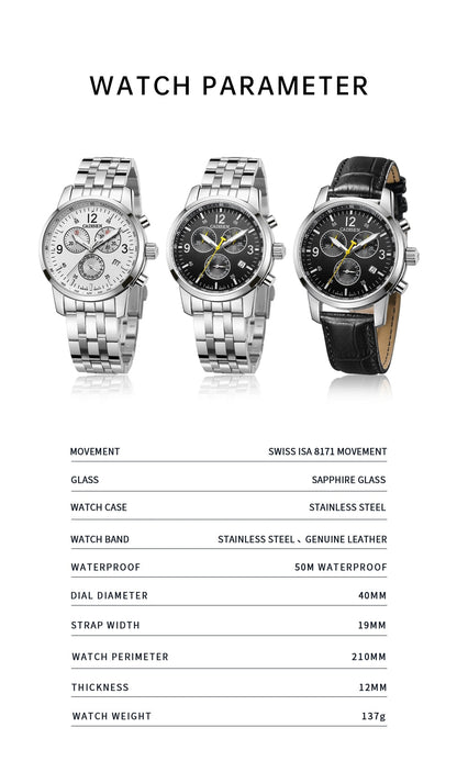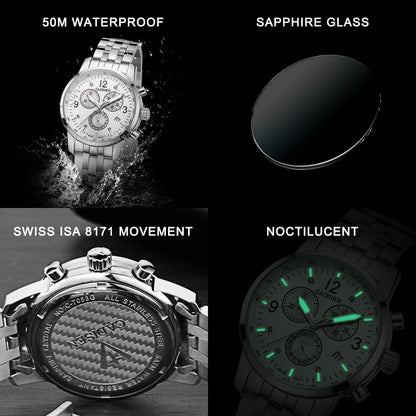 Pay in 4 instalments with AfterPay, Buy Now Pay LaterCADISEN New Mens Sports Quartz Watches Swiss ISA Cal.8171 movement Top Brand Sapphire Waterproof Chronograph Luxury Watch
