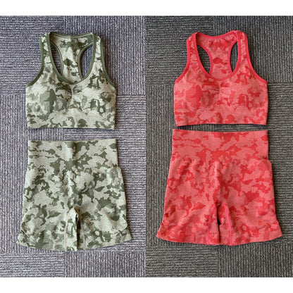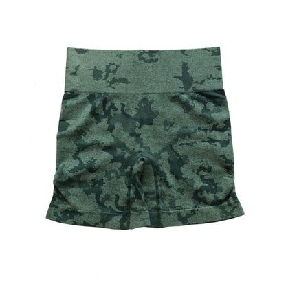 Camo Seamless Shorts High Waist Booty Gym Shorts Workout Short Fitness Ribbed Waist Running Shorts