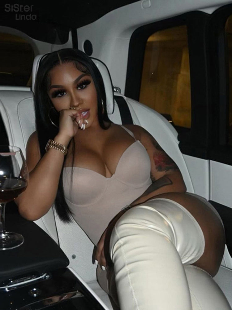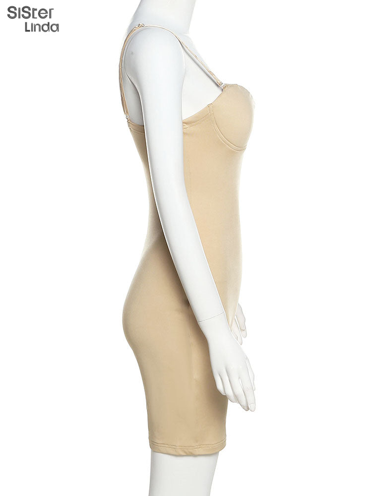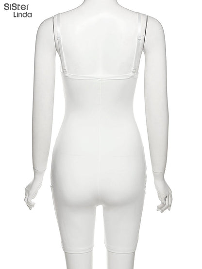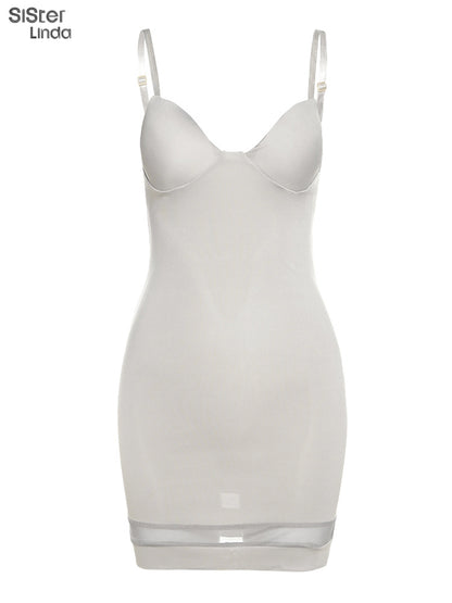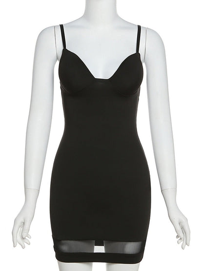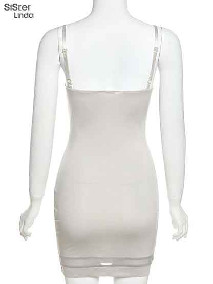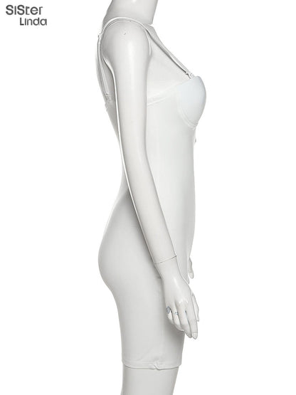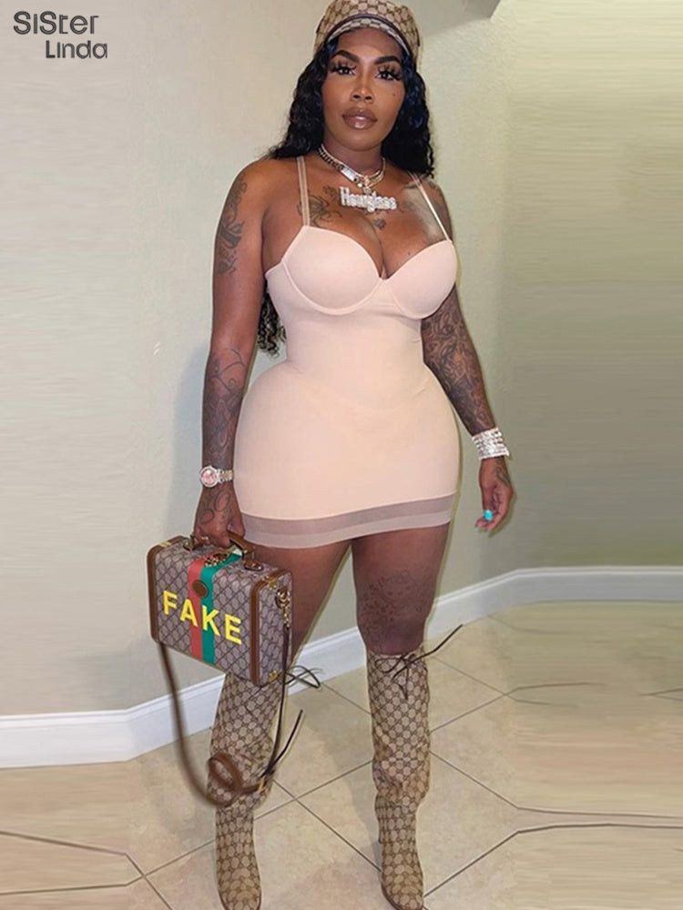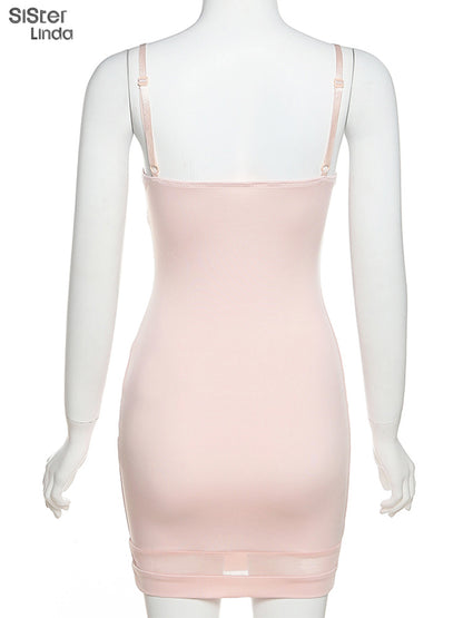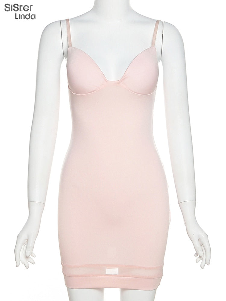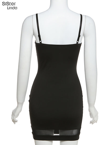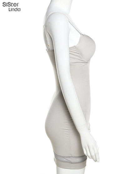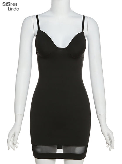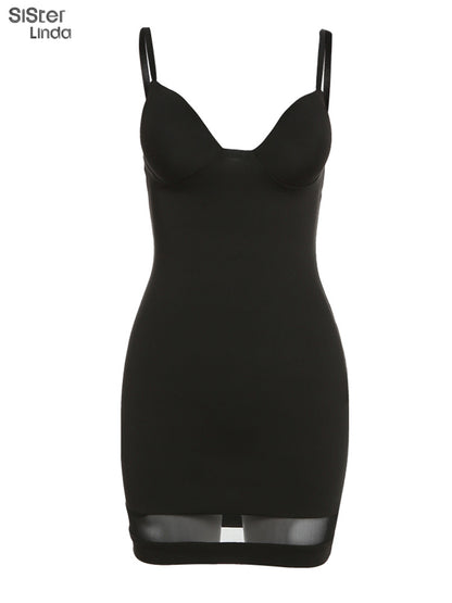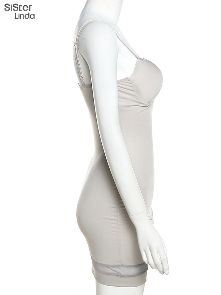 Casual Mesh Bodycon Mini Dress Women Romper Sleeveless Skinny Stretchy Deep V Neck Party Clubwear Trend Outfit