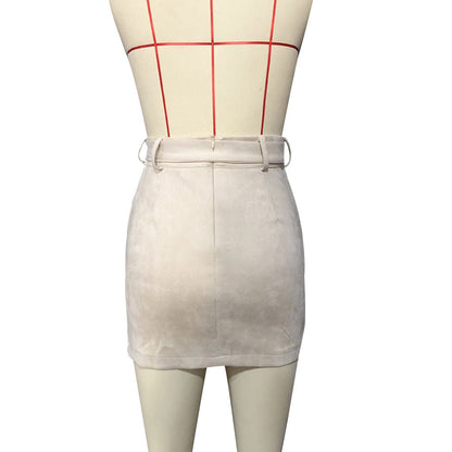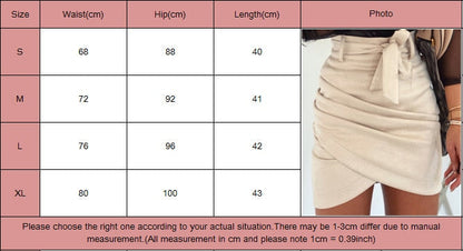 Casual Solid Suede Bodycon Pencil Ladies Party Cocktail Lace-Up High Waist Sashes Mini Streetwear Skirt