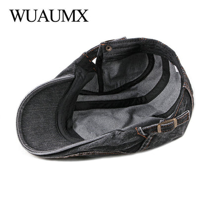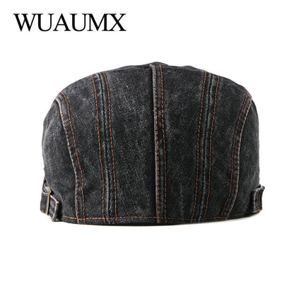 Casual Spring Summer Berets Hat Men Women Denim Newsboy Ivy Cotton Cap Duckbill Ivy Flat Cap