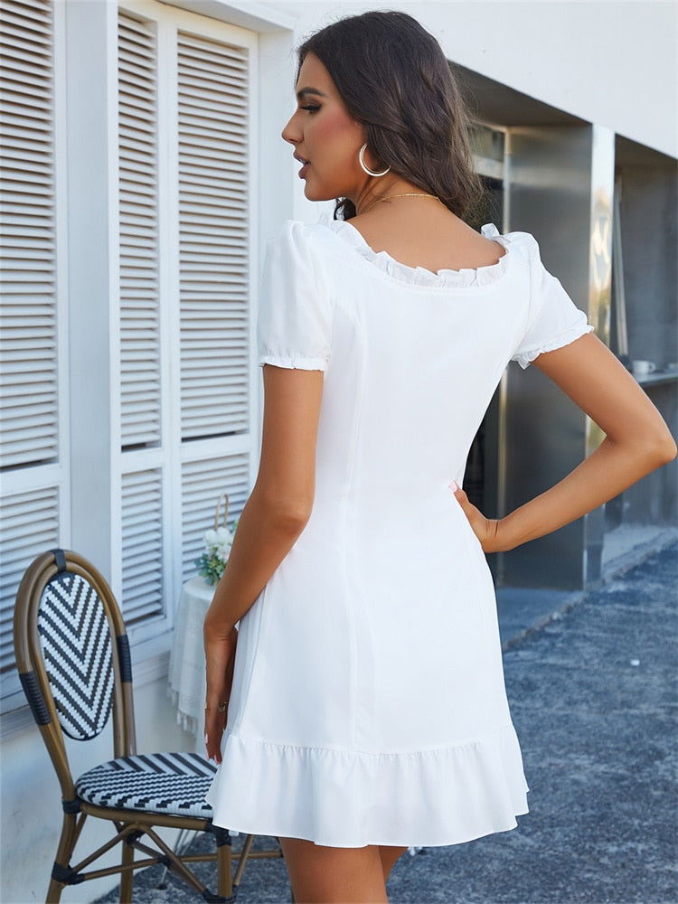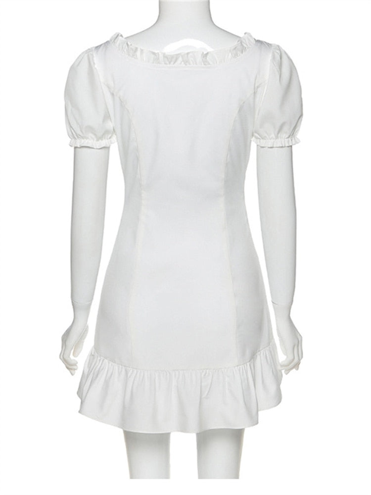 Chic And Elegant Woman Dress Summer Bow Cute White Party Birthday Festival Dresses Cute French Romantic Dress