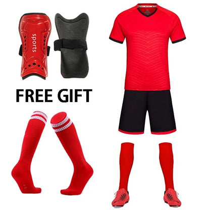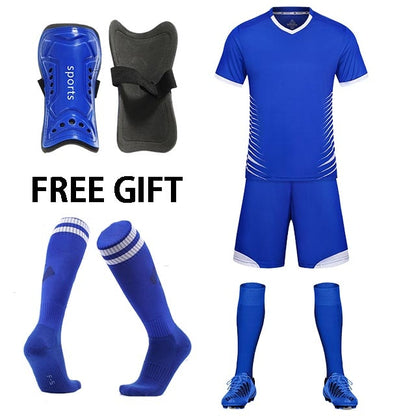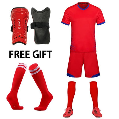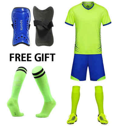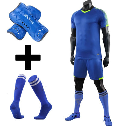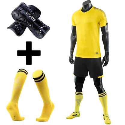 Children Adult Football Jerseys Boys and girls Soccer Clothes Sets youth soccer sets training jersey suit with socks and Shin guards