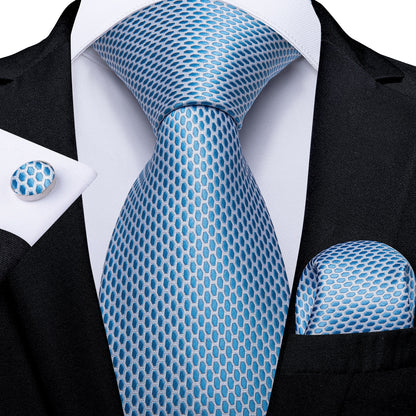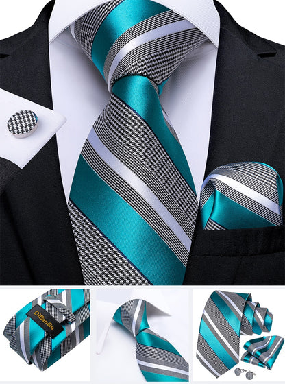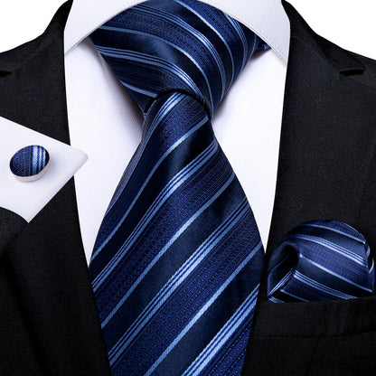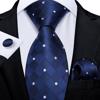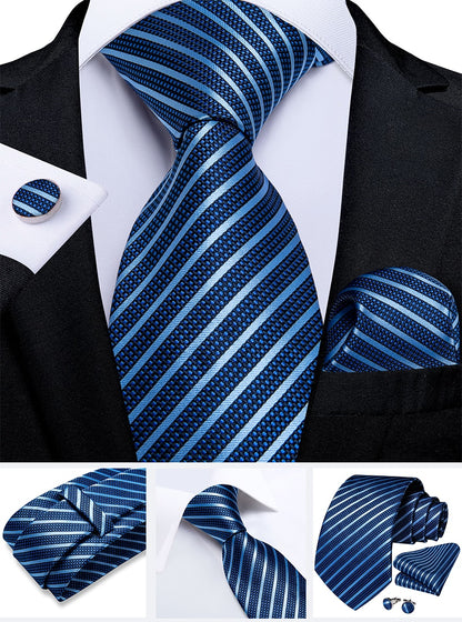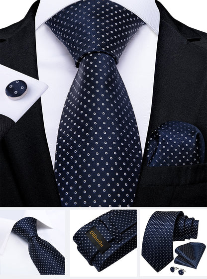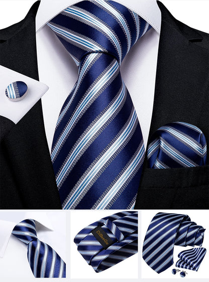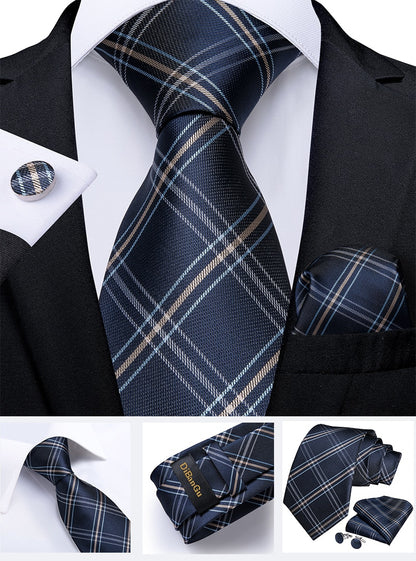 Pay in 4 instalments with AfterPay, Buy Now Pay Later3 Piece Classic 100% Silk Men's Ties 8cm Blue Plaid Dot Striped Business Necktie Handkerchief Wedding Party Tie Set