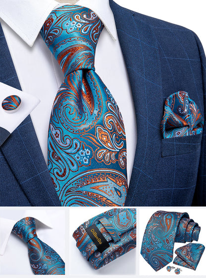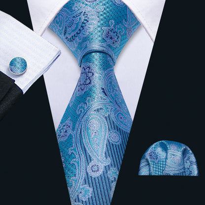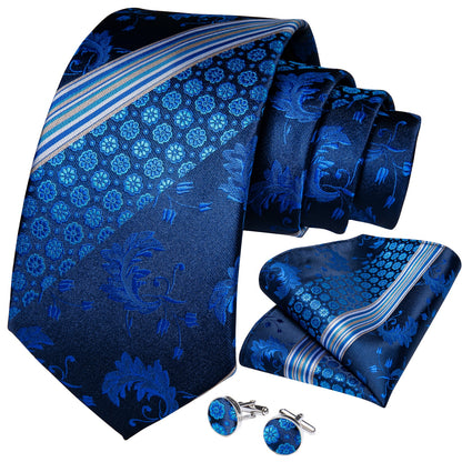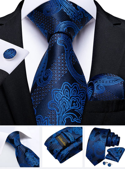 3 Piece Classic 100% Silk Men's Ties 8cm Blue Plaid Dot Striped Business Necktie Handkerchief Wedding Party Tie Set