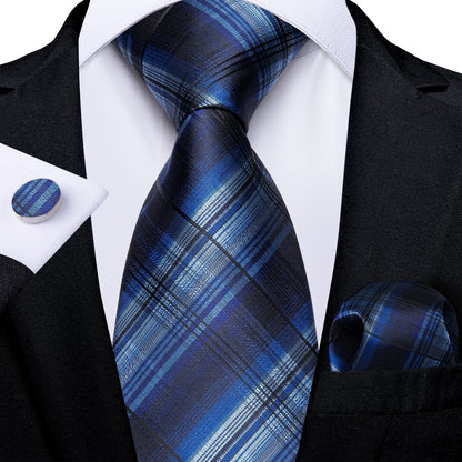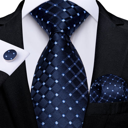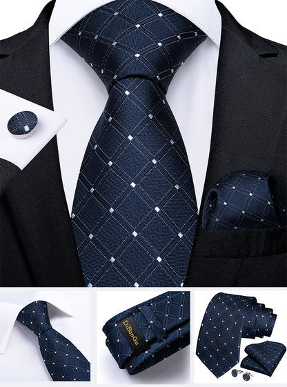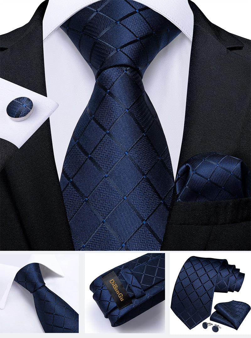 Color: Navy Blue Paisley Plaid Tie Set