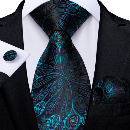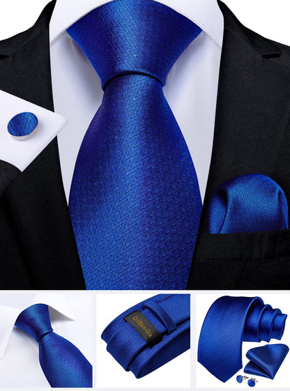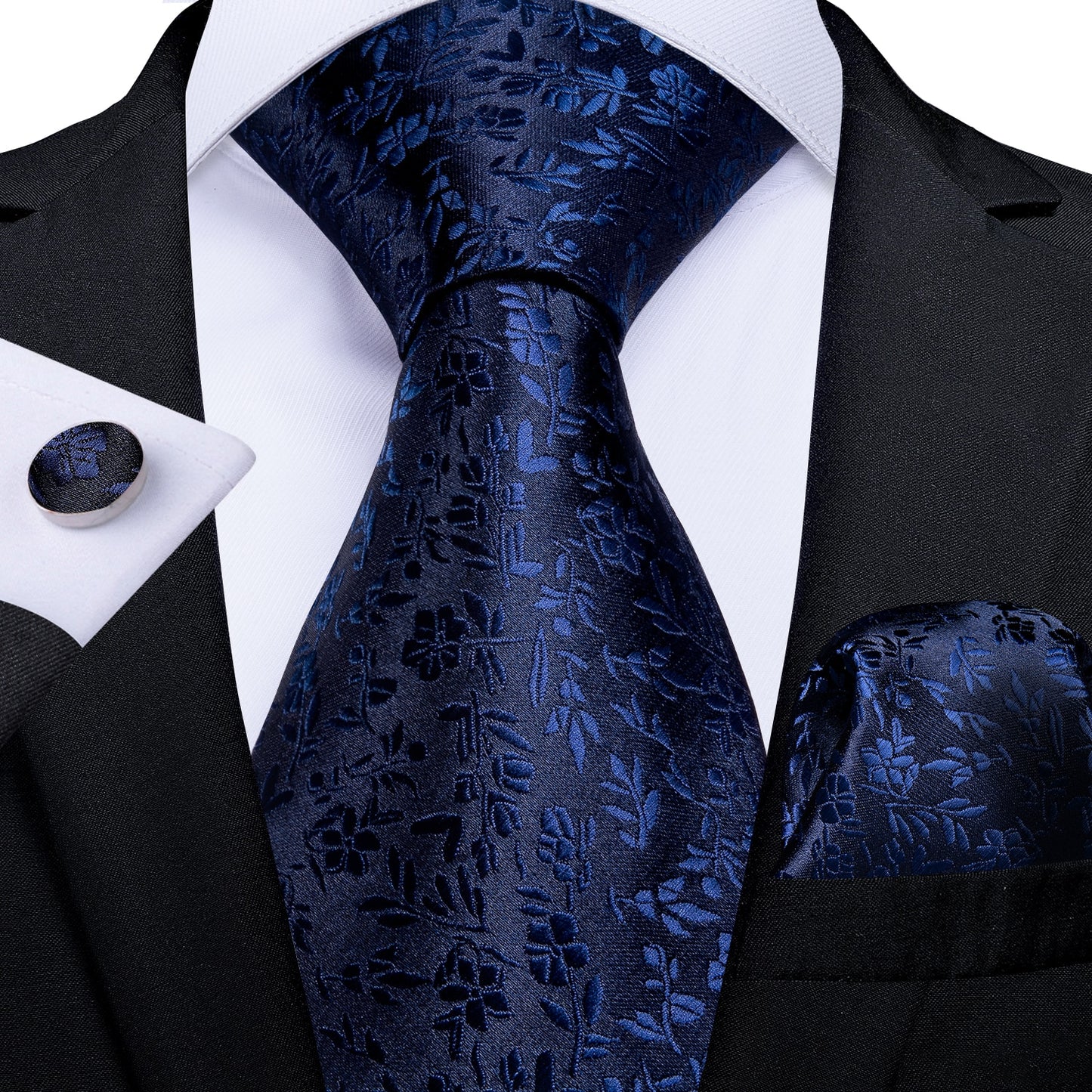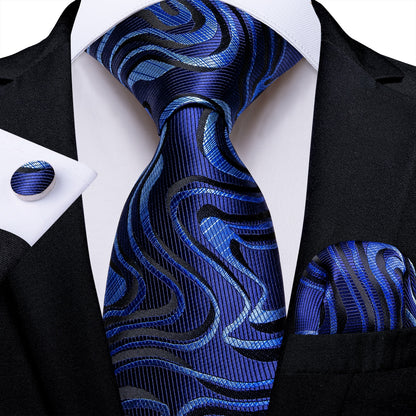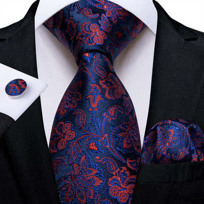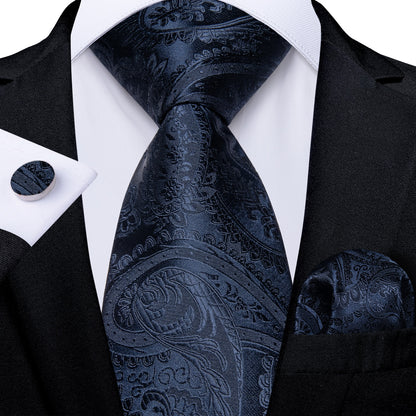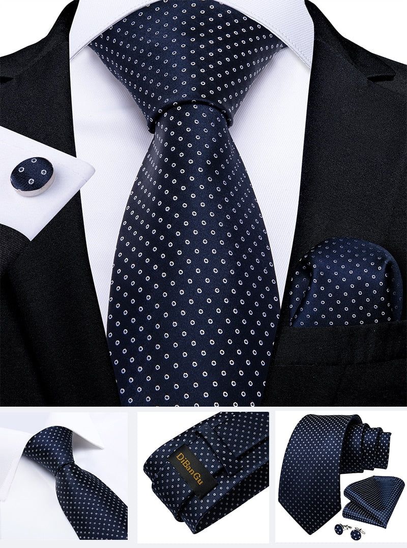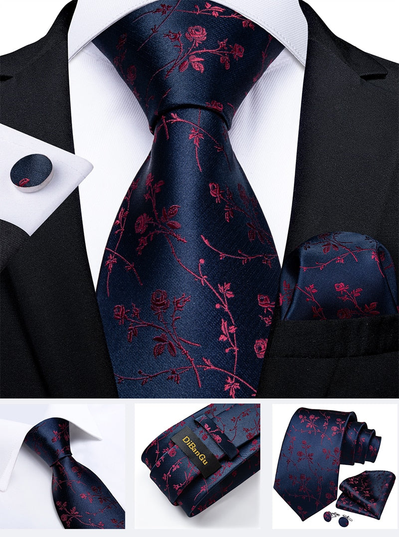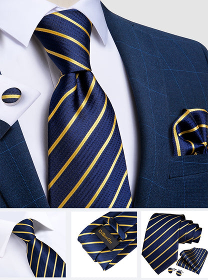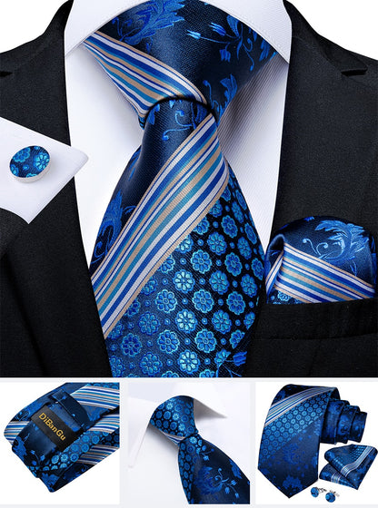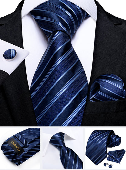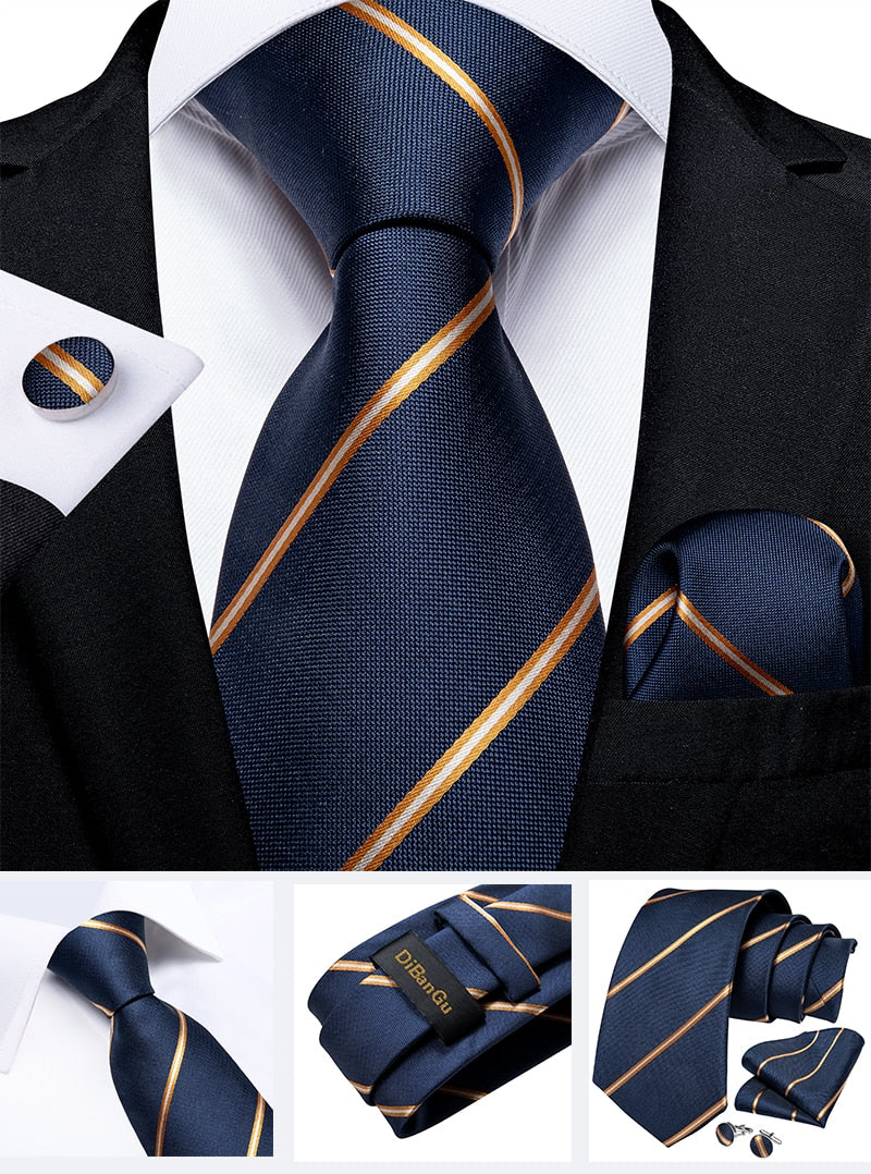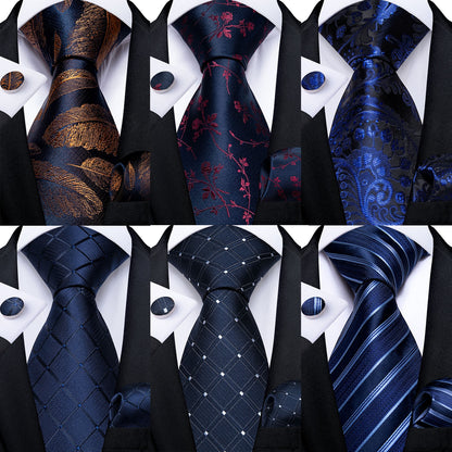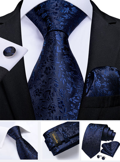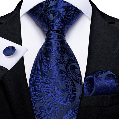 Classic Navy Blue Men's Tie Striped Paisley Floral Necktie Pocket Square Cufflinks Business Tie Set Cravat Gift For Men