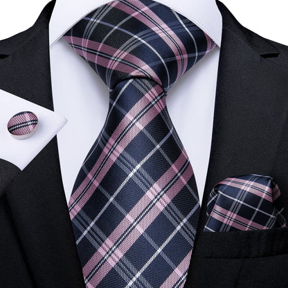 Classic Plaid Check Red Blue White Striped Silk Ties For Men Business Wedding Men's Neck Tie Handkerchief Cufflinks Gift For Men