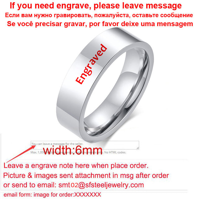 Classic Silver Color Wedding Ring Flat Top Stainless Steel Promise Ring For Women Men 6mm 8mm