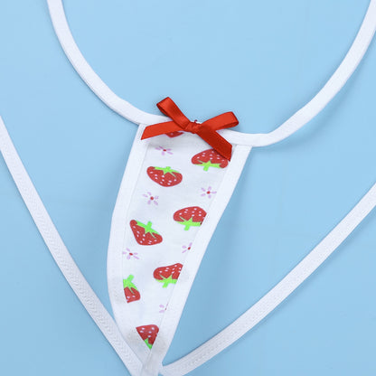 Cosplay Lingerie Body Catsuit Cute Strawberry Halter Neck Mini Micro Bikini Babydoll Costume Underwear