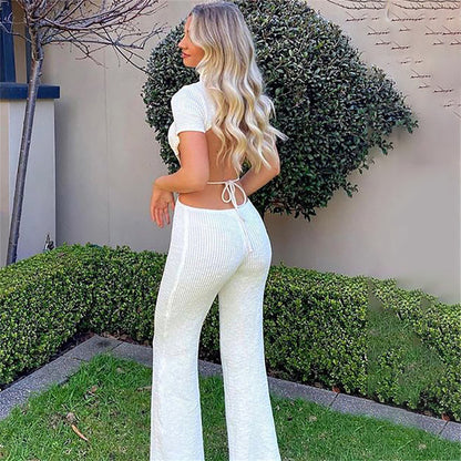 Pay in 4 instalments with AfterPay, Buy Now Pay LaterCotton Backless Cutout Bandage Jumpsuits Flare Pants Rompers Club Party One Piece Outfits Overalls