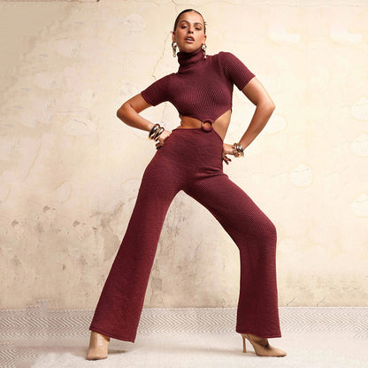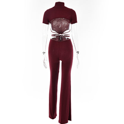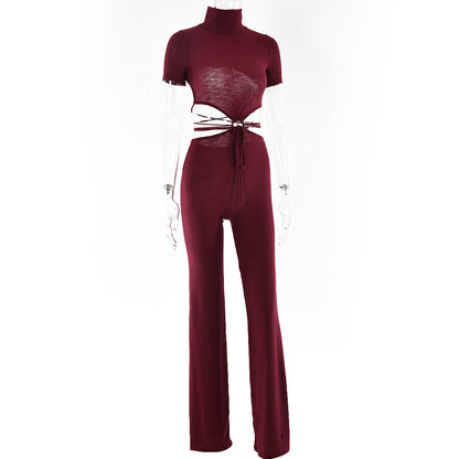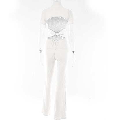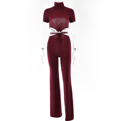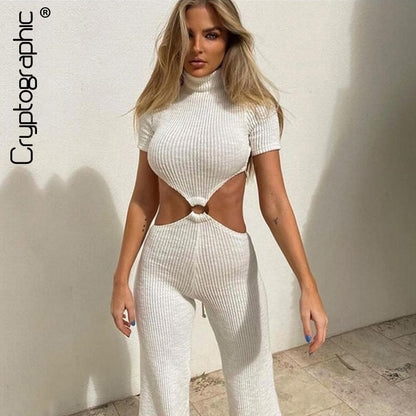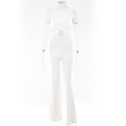 Cotton Backless Cutout Bandage Jumpsuits Flare Pants Rompers Club Party One Piece Outfits Overalls