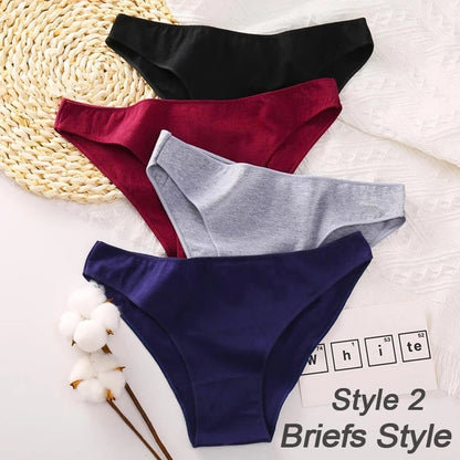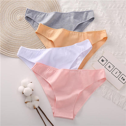 Cotton Mix Women's Panties Comfortable Underwear Low Waist Solid Color Briefs Plus Size Panty Lingerie