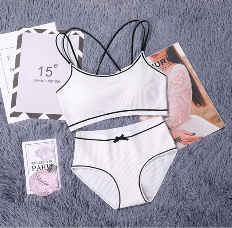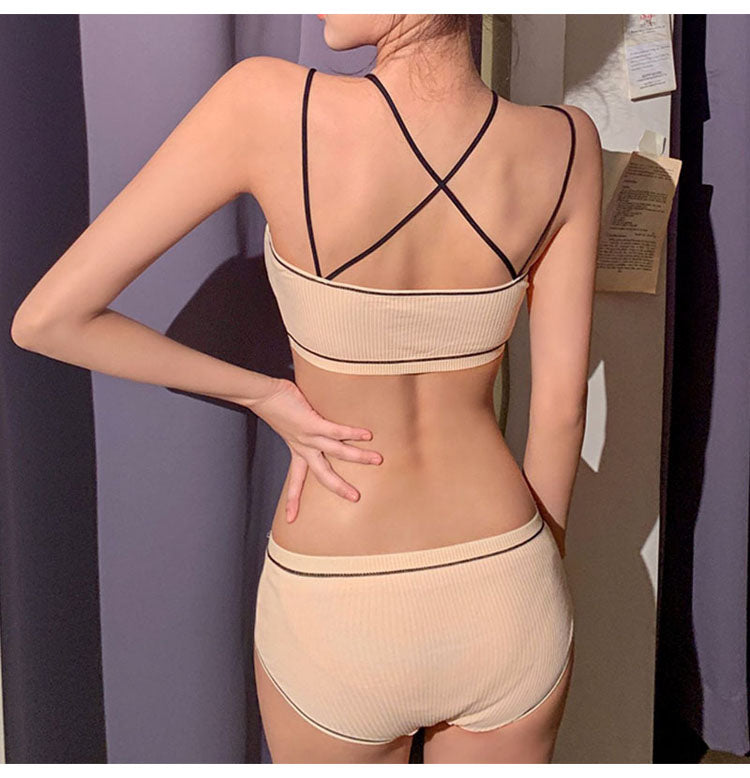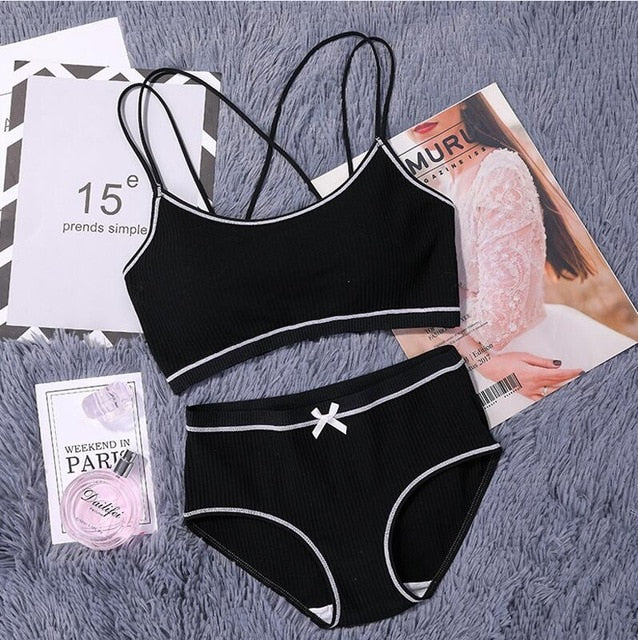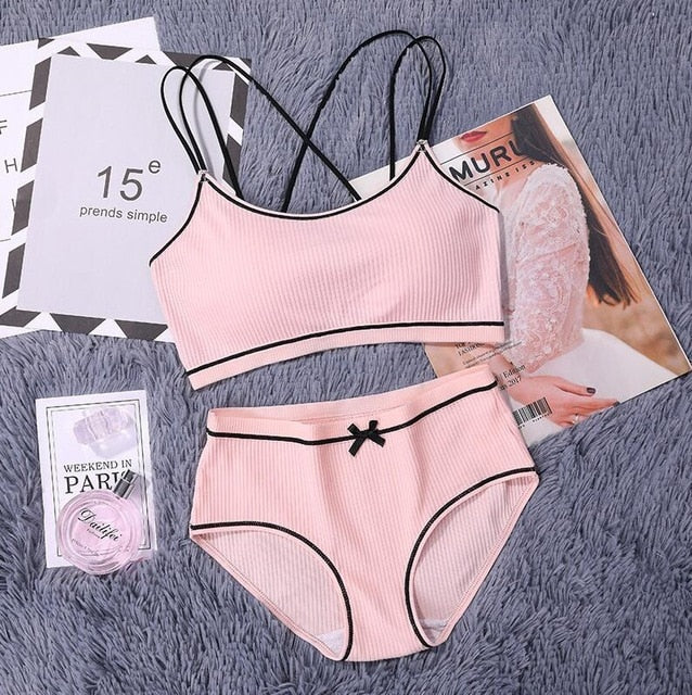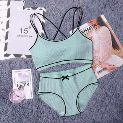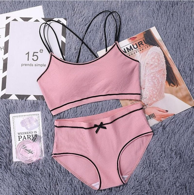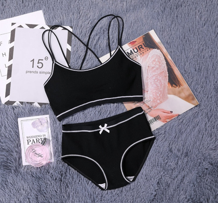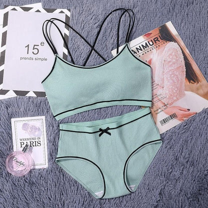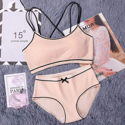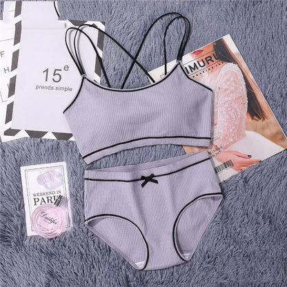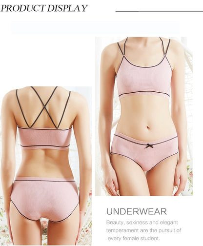 Cotton Thin Screw Thread Push Up Bra Set beauty back Women Bra Panties Set Comfort Underwear Lingerie Set