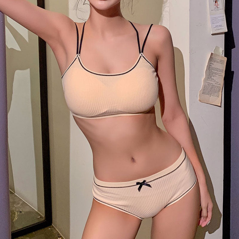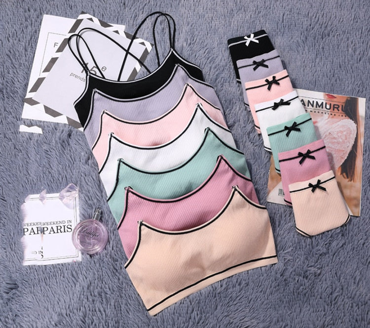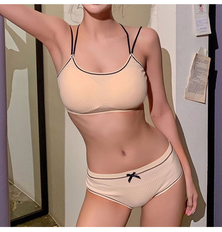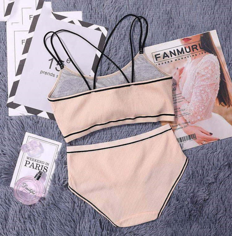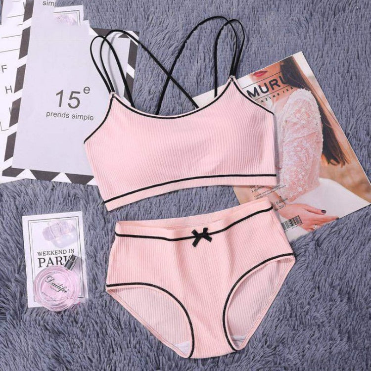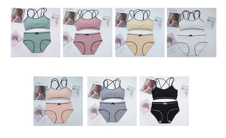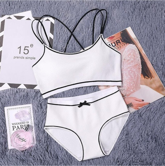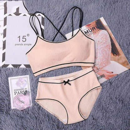 Cotton Thin Screw Thread Push Up Bra Set beauty back Women Bra Panties Set Comfort Underwear Lingerie Set