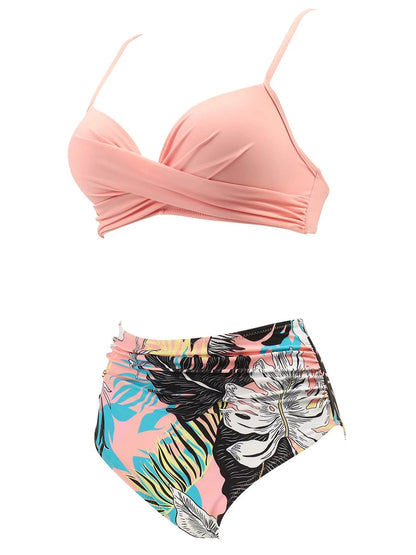 2 Piece Cross Frill Bikinis Women Swimwear Print High Waist Swimsuit Beachwear Bathers Bathing Swimming Swim Suit