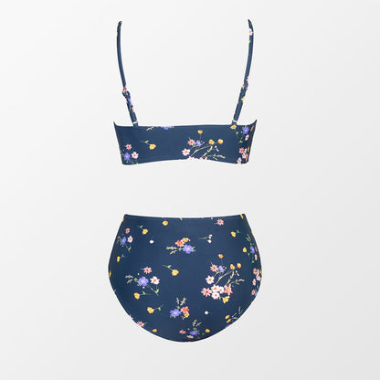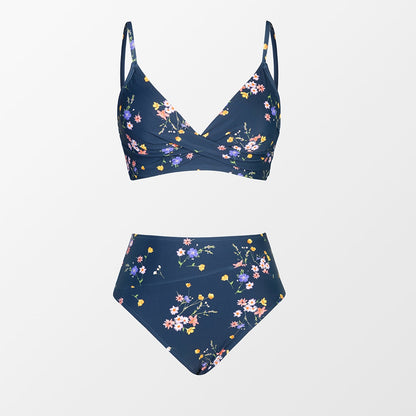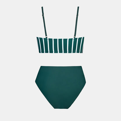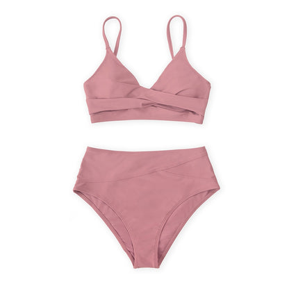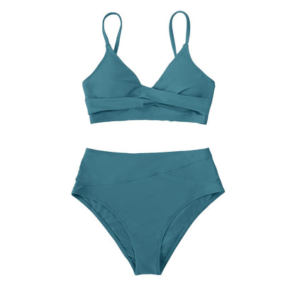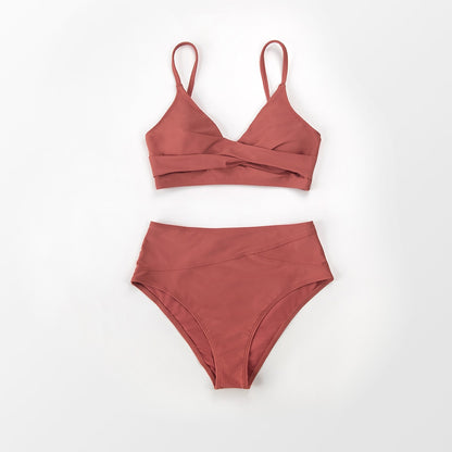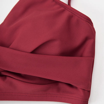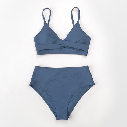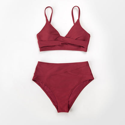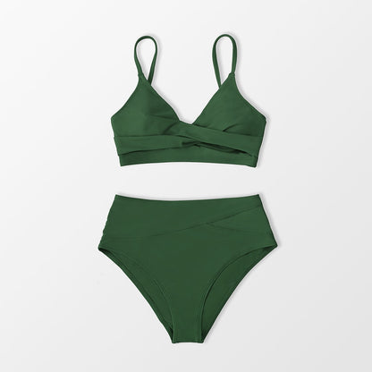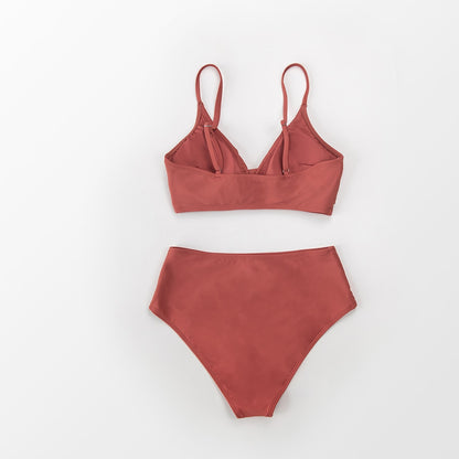 Solid Black Twist High Waist Bikini Sets Swimsuit V-neck Tank Two Piece Swimwear Beach Bathing Suit