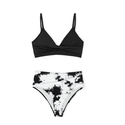 Pay in 4 instalments with AfterPay, Buy Now Pay LaterSolid Black Twist High Waist Bikini Sets Swimsuit V-neck Tank Two Piece Swimwear Beach Bathing Suit