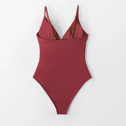 Deep V Neck One-piece Swimsuit Women Removable Bra PMonokini Summer Beach Swimwear