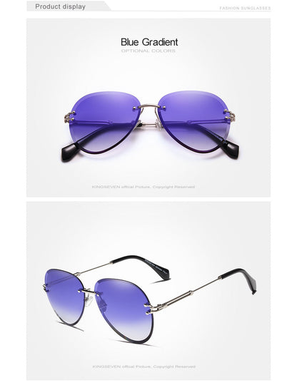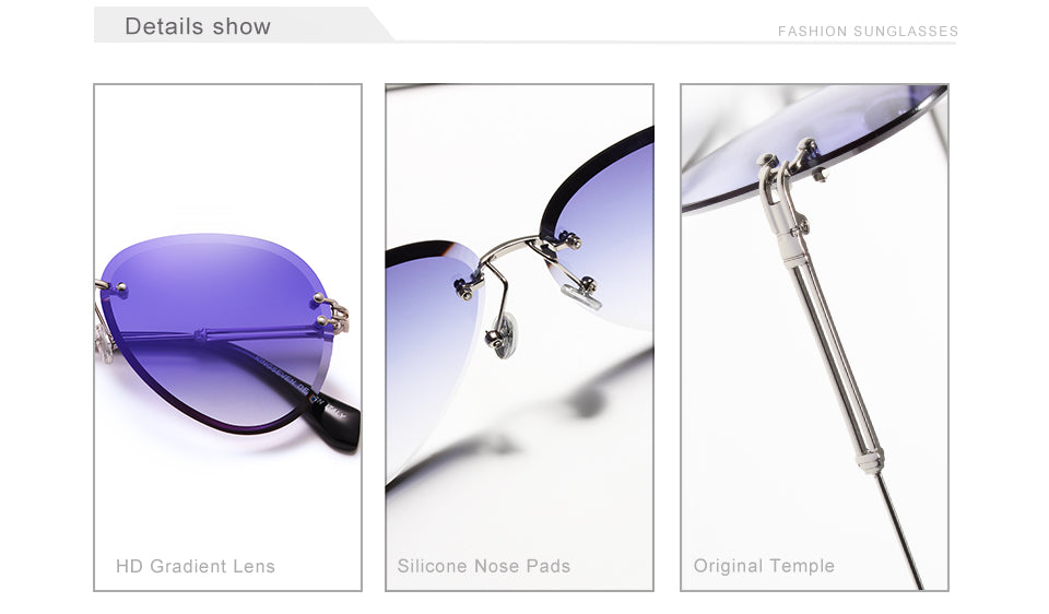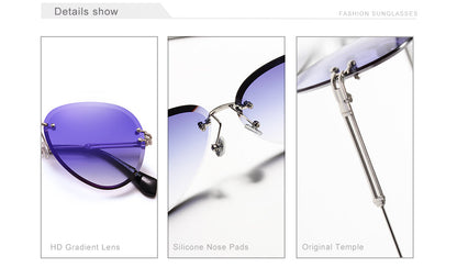 Designer Vintage Fashion Rimless Women Sunglasses Gradient Lens Sunglasses