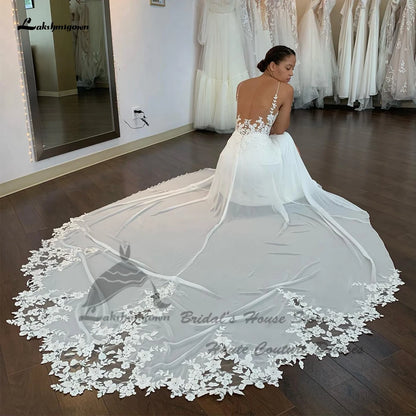 Drop Waist Chiffon Boho Robe Elegant Long Bridal Beach Wedding Gowns Floral Lace Appliques Spaghetti Strap Wedding Dress