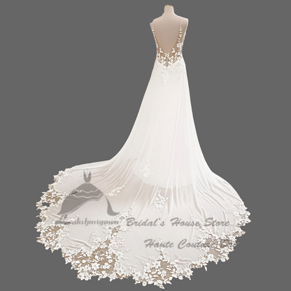 Pay in 4 instalments with AfterPay, Buy Now Pay LaterDrop Waist Chiffon Boho Robe Elegant Long Bridal Beach Wedding Gowns Floral Lace Appliques Spaghetti Strap Wedding Dress