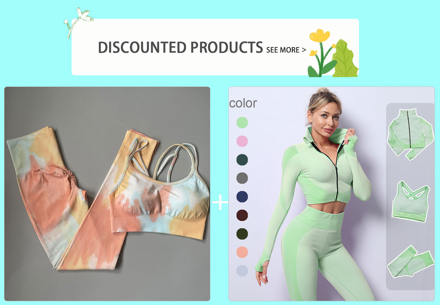 Pay in 4 instalments with AfterPay, Buy Now Pay Later2 Piece Dye Seamless yoga set Women gym fitness clothing sportswear sports bra high waist gym leggings sports suits yoga suits