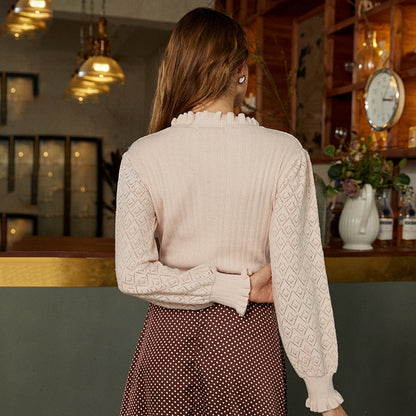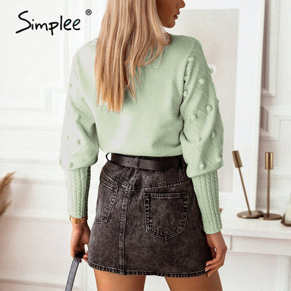 Elegant fur pompon sweater Autumn winter lantern sleeve knitted sweater Streetwear ladies green pullover Jumper