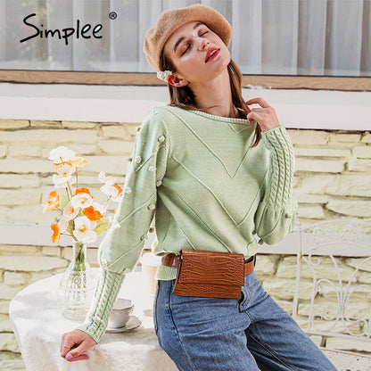 Pay in 4 instalments with AfterPay, Buy Now Pay LaterElegant fur pompon sweater Autumn winter lantern sleeve knitted sweater Streetwear ladies green pullover Jumper