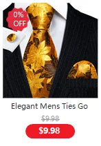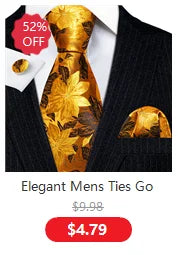 Pay in 4 instalments with AfterPay, Buy Now Pay LaterElegant Men's Gold Leaves Floral Silk Neck Tie Pocket Square Cufflinks Wedding Business Party Gift Set