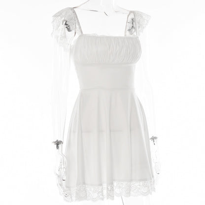 Elegant White Lace Strap Mini Dress For Women Fashion Sleeveless Backless Loose Short Dresses Clubwear