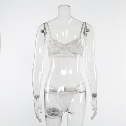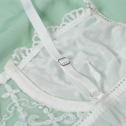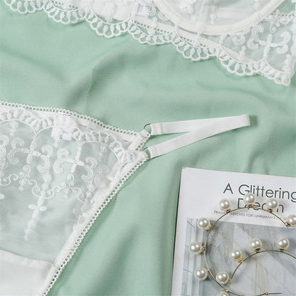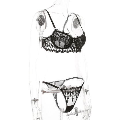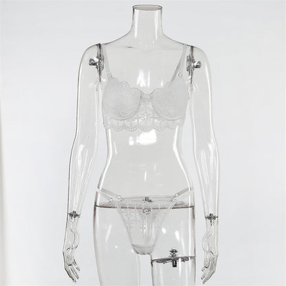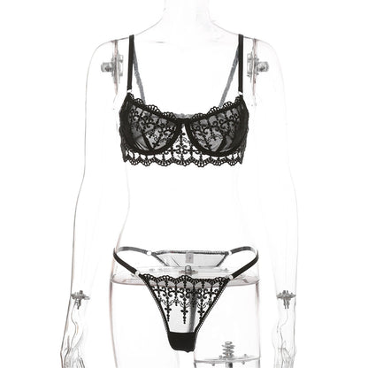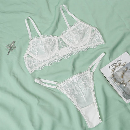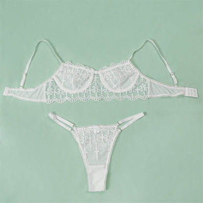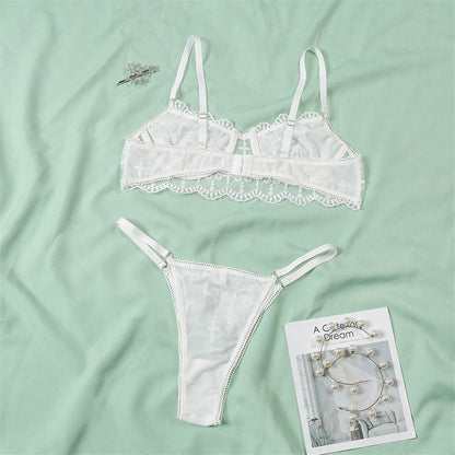 Embroidery Bra Underwear Set White Bra and Party Set Underwire Female Half Cup Bra Lingerie Set