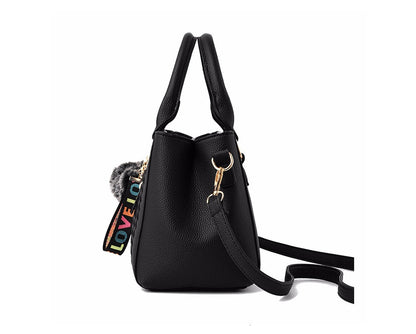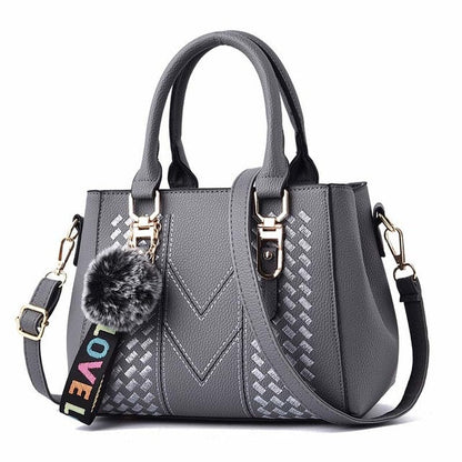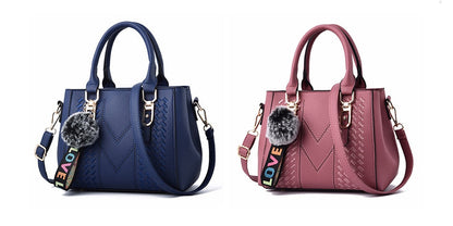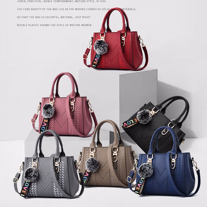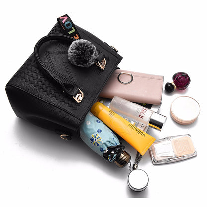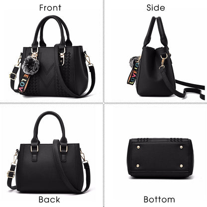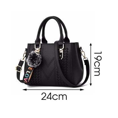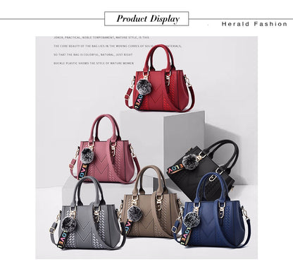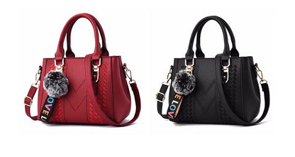 Embroidery Handbags with Fur Ball Designer PU Leather Shoulder Messenger Bag Office Crossbody Tote Bag Female Purse Handbag
