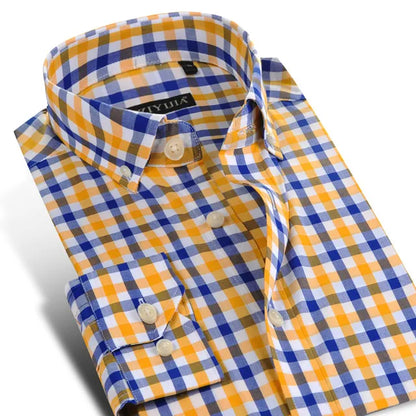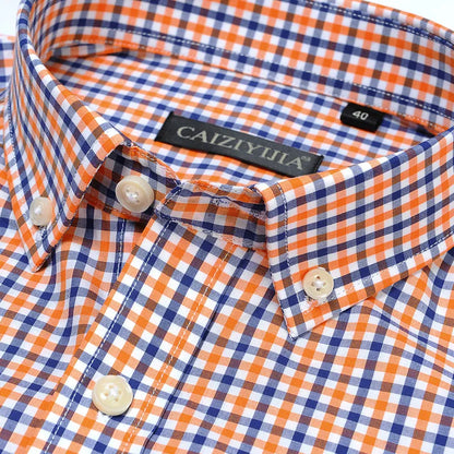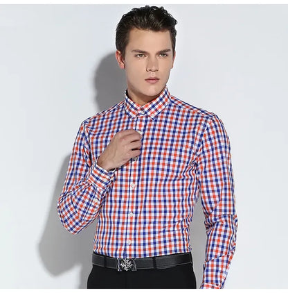 English Style Plaid Checked Cotton Men Shirts Without Pocket Long Sleeve Versatile Casual Standard-fit Button-down Gingham Shirt