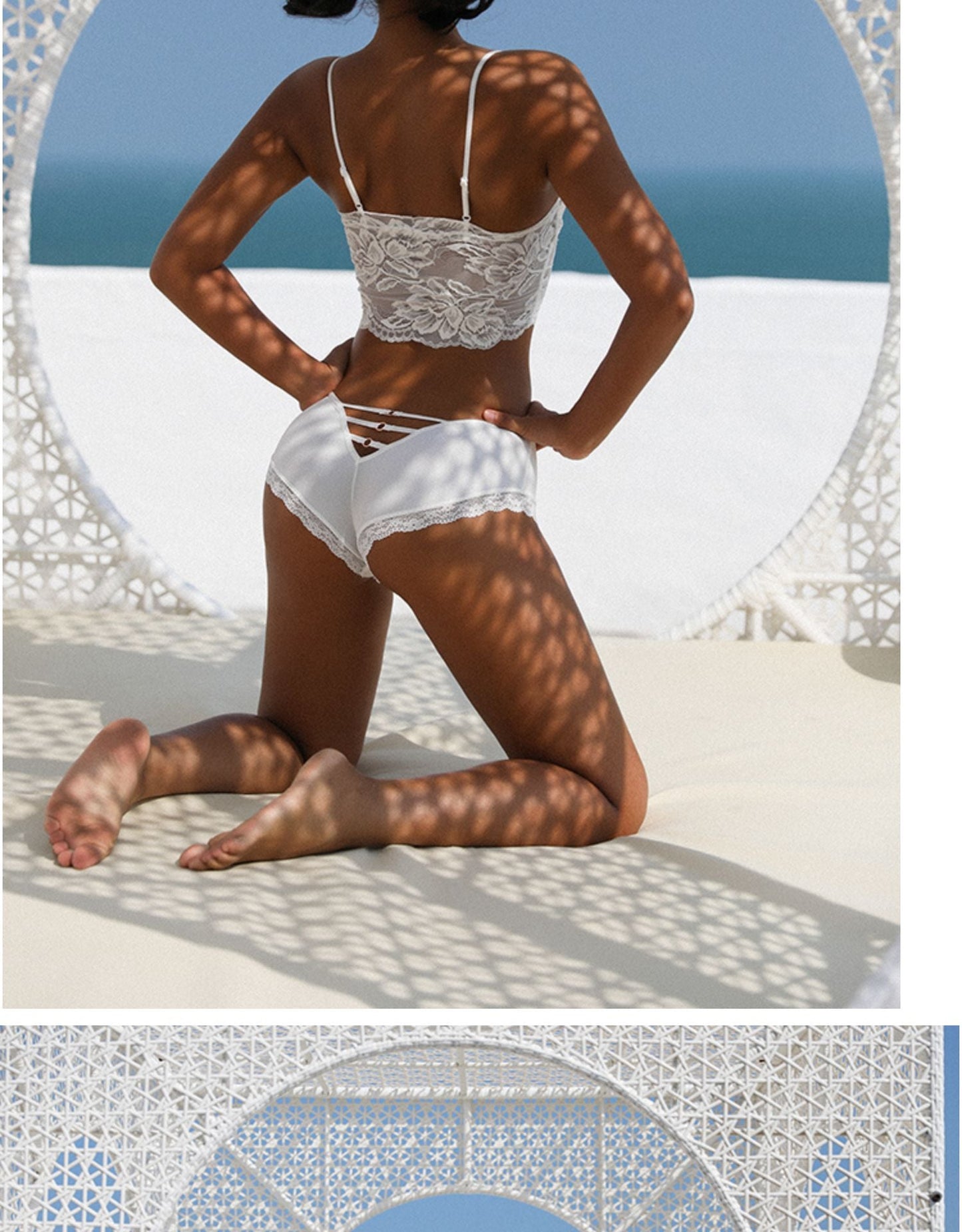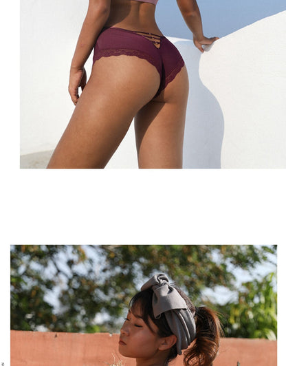 Pay in 4 instalments with AfterPay, Buy Now Pay LaterEuropean Back Bandage Ice Silk Underwear Sexy Lace Edge Seamless Solid Hollow Out Briefs Lingerie Thongs Panties