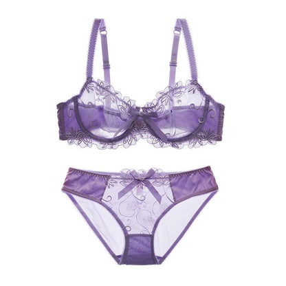 Fashion embroidery bras underwear women set plus size lingerie sexy C D cup Ultrathin transparent bra panties lace bra set
