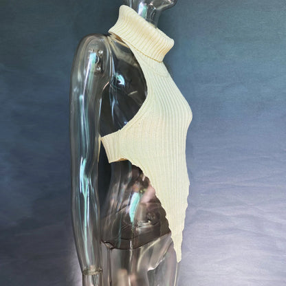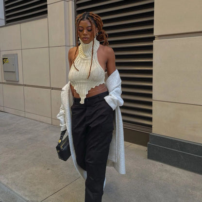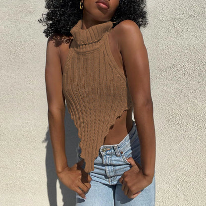 Fashion Knitted Turtleneck Crop Top Women's Summer Sleeveless Backless Tanks Cropped Party Club Top