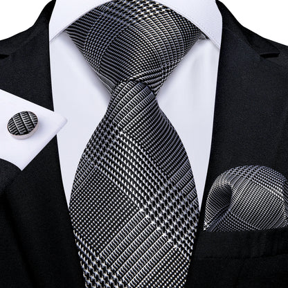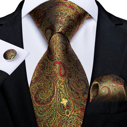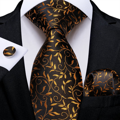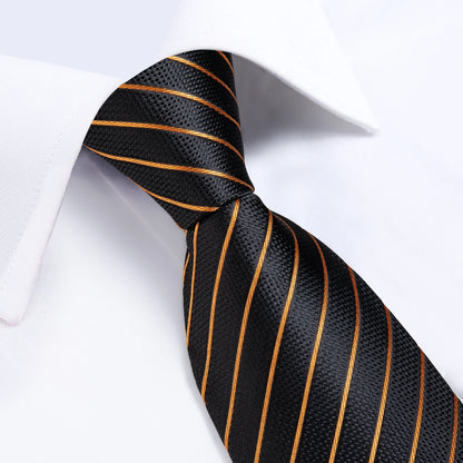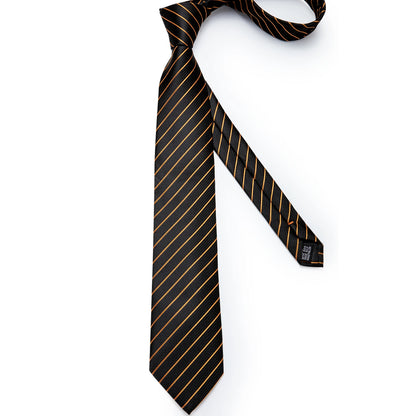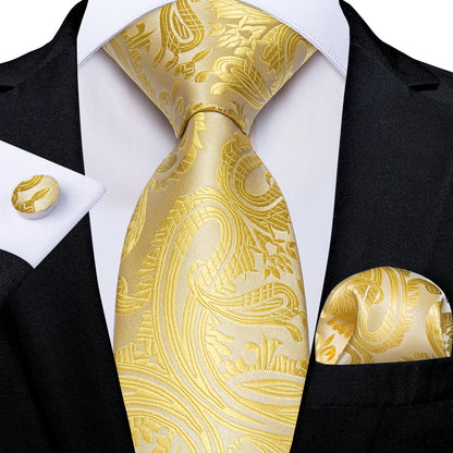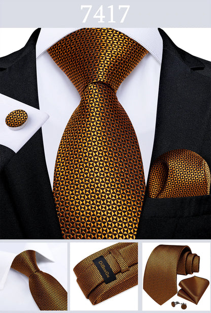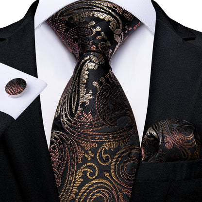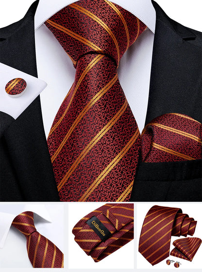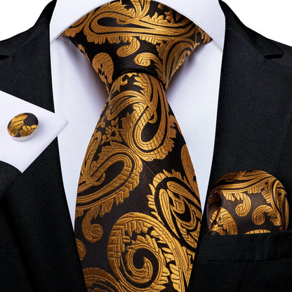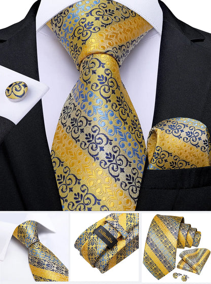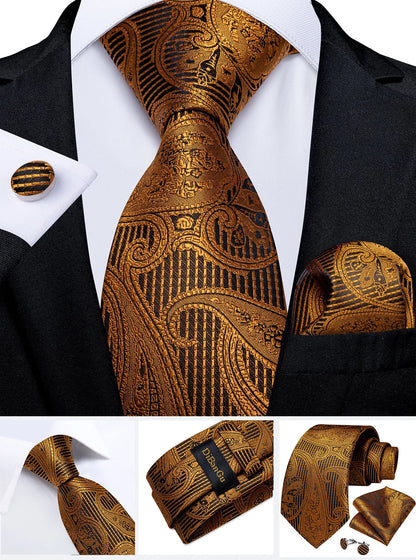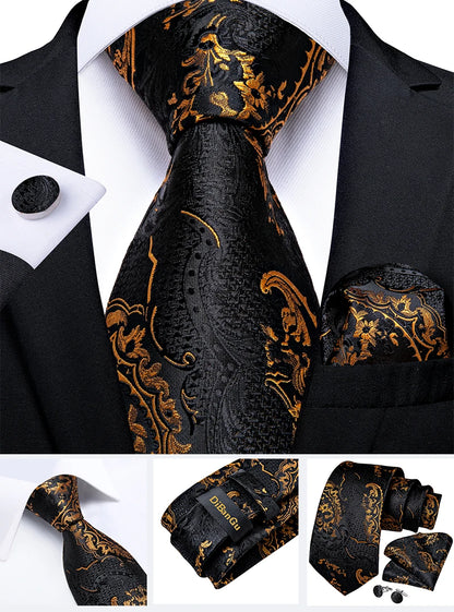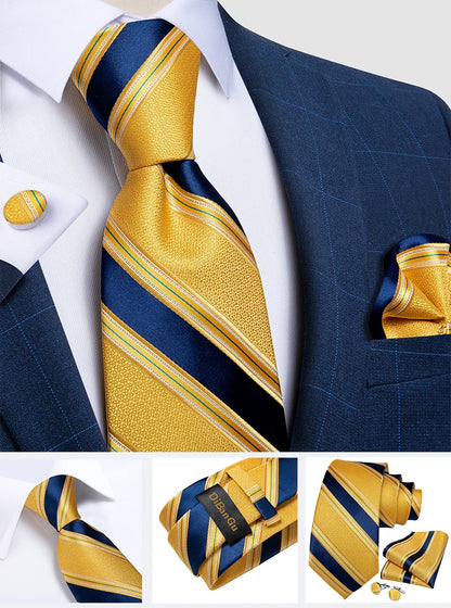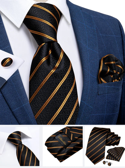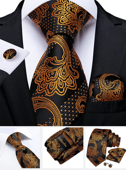 Fashion Men's Tie Luxury Gold Blue Black Striped Paisley Silk Wedding Tie For Men Designer Hanky Cufflinks Gift Tie Set