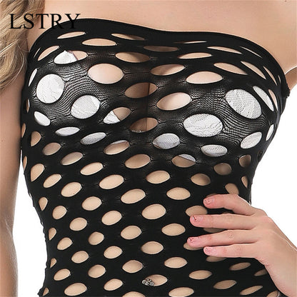 Fishnet Underwear Elasticity Cotton Lingerie Costumes For Mesh Elastic Lingerie Dress