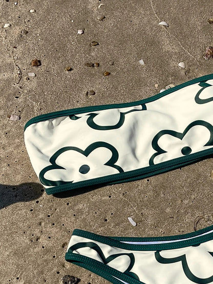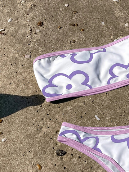 Pay in 4 instalments with AfterPay, Buy Now Pay LaterFloral Print Contrast Binding Bandeau Bikini Swimsuit Two Piece Swimwear Bikini Set Summer Beach Bathing Suit