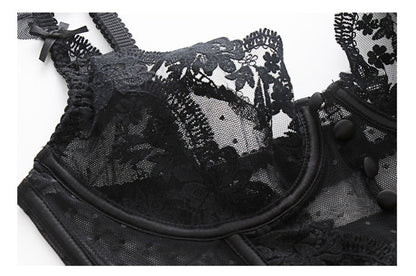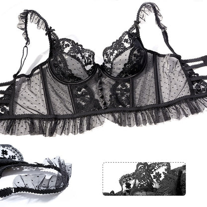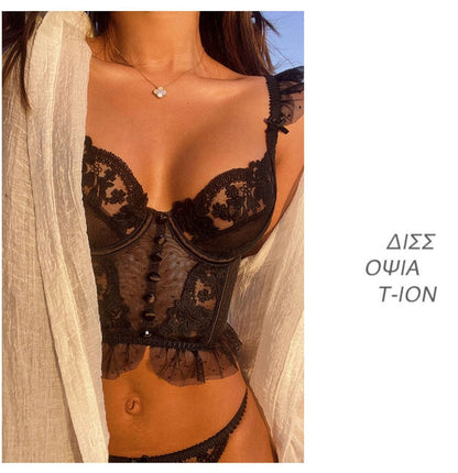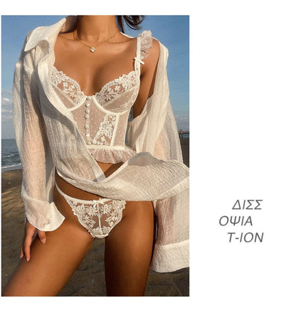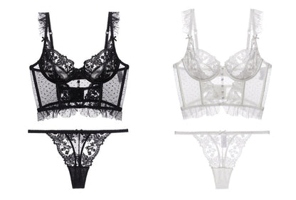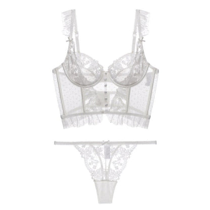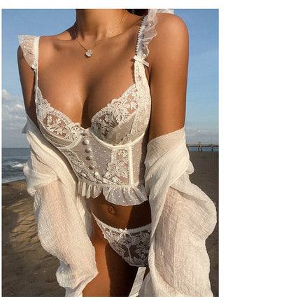 French Lingerie Underwear Set Push Up Brassiere Lace Transparent Bra Panty Sets Wedding White Thin Underwear