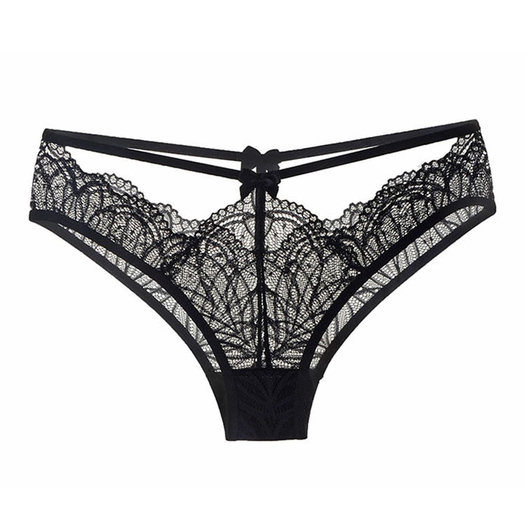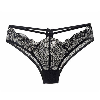 French Transparent Underwear Women Erotic Floral Lace Briefs Seamless Thong Hollow Out Panties Lingerie